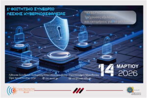 Σας προσκαλούμε στο 1ο Φοιτητικό Συνέδριο της Λέσχης Κυβερνοασφάλειας του Πανεπιστημίου Μακεδονίας, με τίτλο “Κυβερνοασφάλεια: τρέχουσες εξελίξεις και εκτιμήσεις για το μέλλον”, το οποίο θα πραγματοποιηθεί στις 14 Μαρτίου 2026 στην Αίθουσα Συνεδρίων “Καθηγητή Ηλία Ι. Κουσκουβέλη”, στον 1ο όροφο του Πανεπιστημίου Μακεδονίας.